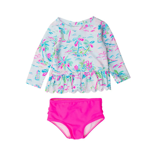 Tropical Resort Scalloped Long Sleeve Rash Guard 2-Piece