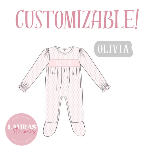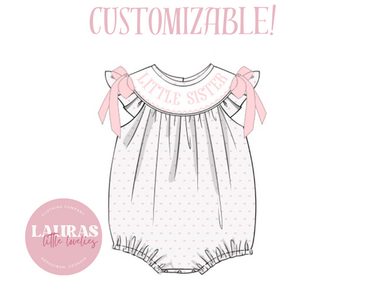 The remaining items are custom themes we have previously done. These will have an ETA of 10-13 weeks, but if you need the item sooner, please select rush options for 5-7 weeks or reach out to us on our contact page. Many of these items are customizable with your name or phrase, making them great for birthdays, milestones, BIG/LITTLE SISTER/BROTHER, but are very sweet with first names too. Please do not combine these with ready to ship or arriving soon extras. We will add to this collection periodically, so check this section regularly. Reach out with any questions!