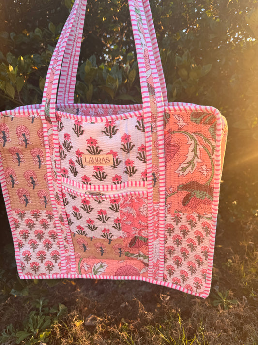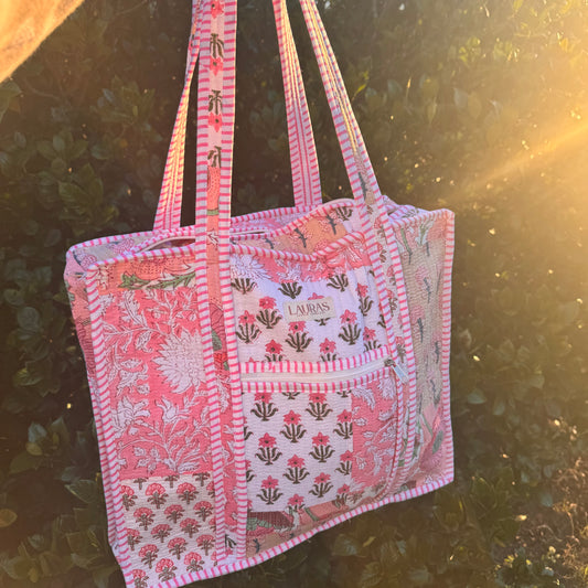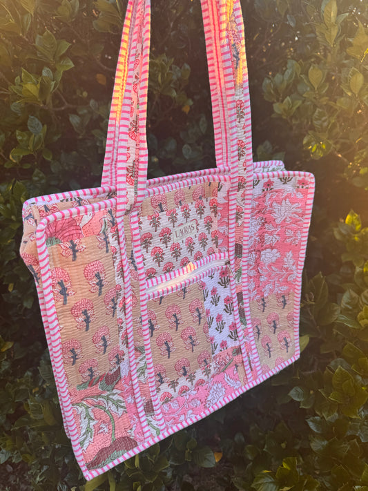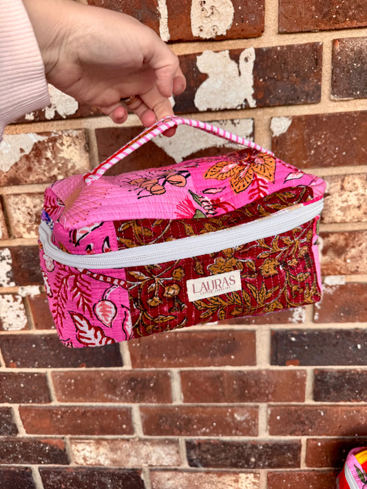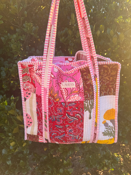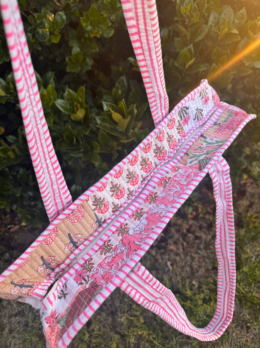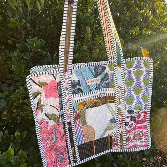 We are thrilled to bring you the cutest quilted collection consisting of Tote Bags, Cosmetic Bags, Small Handbags, Duffles, Zippered Totes, & More. These are handcrafted by artisans in India and made of 100% cotton. Patterns are often limited and one of a kind drops with limited quantities.