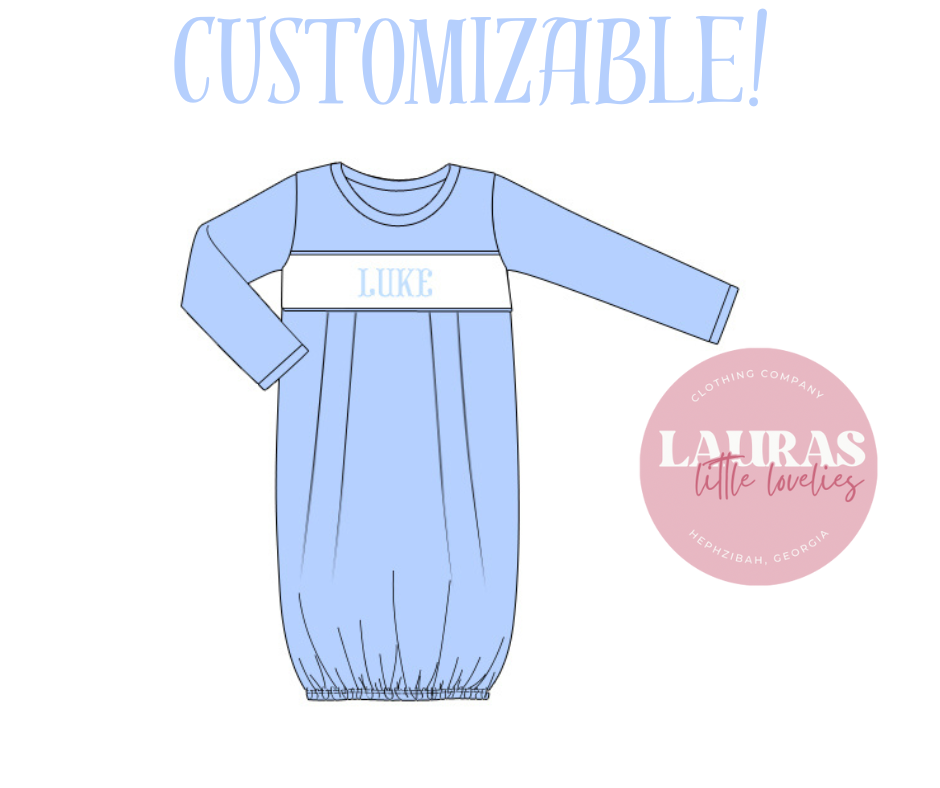 Baby Blue Boys Name Smock Gown