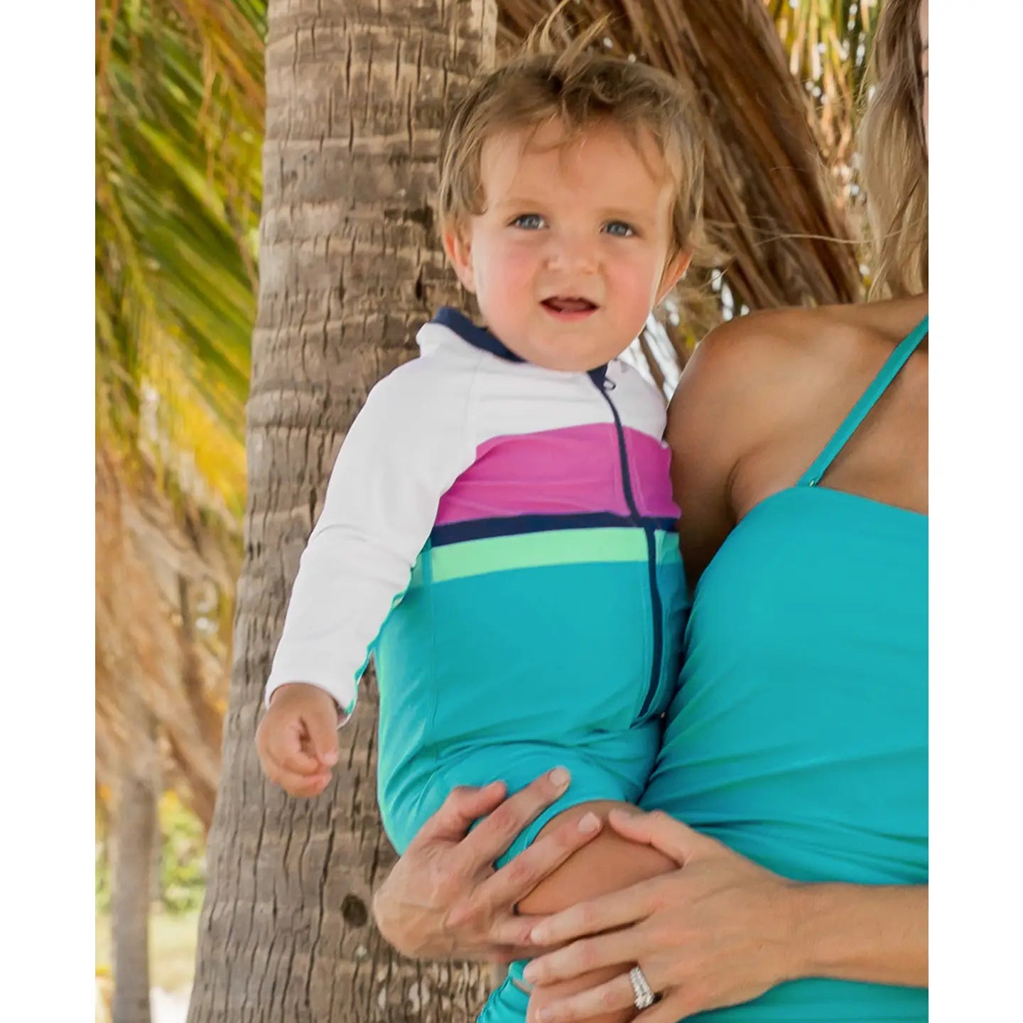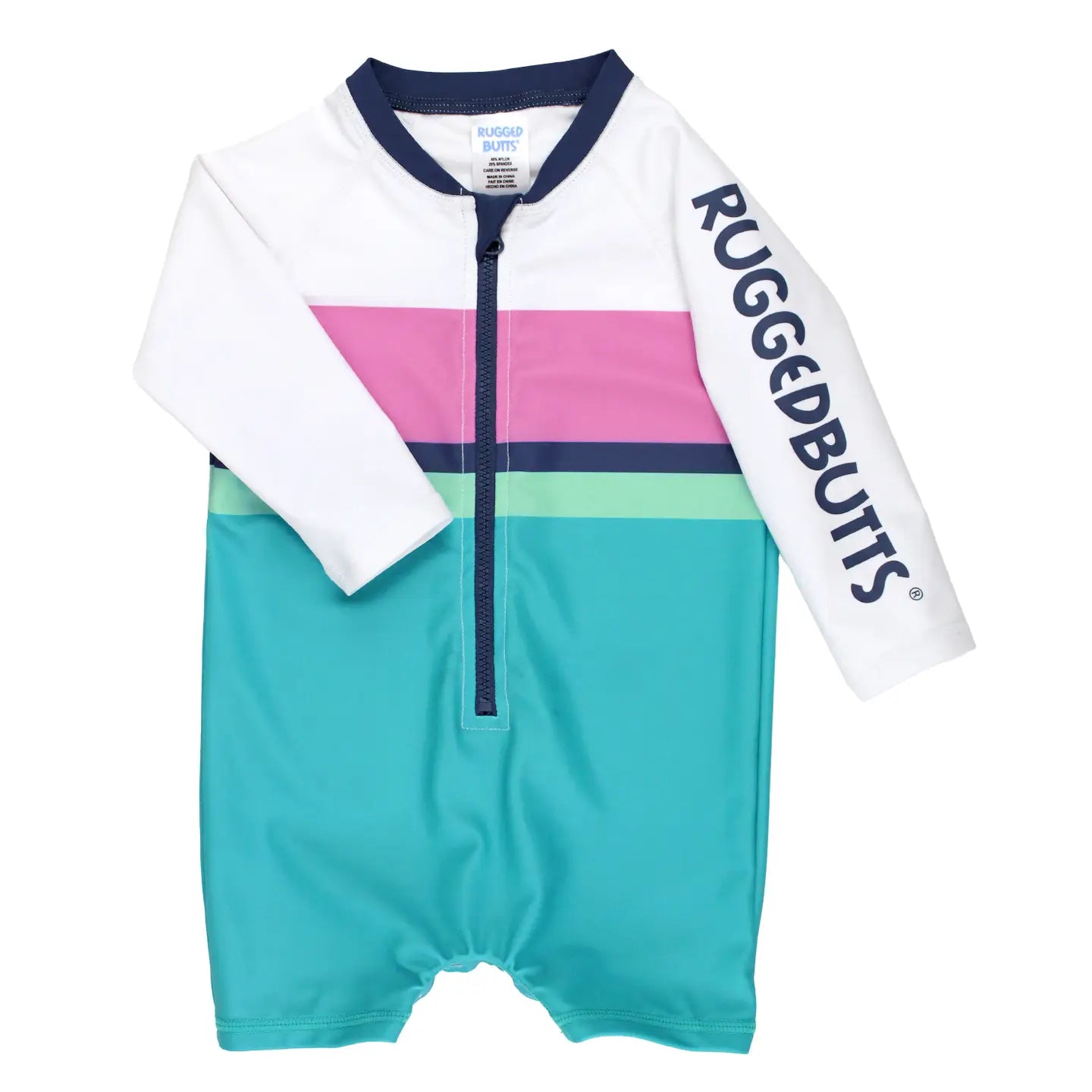 Baby Boys Aqua Color Block Long Sleeve One Piece Rash Guard