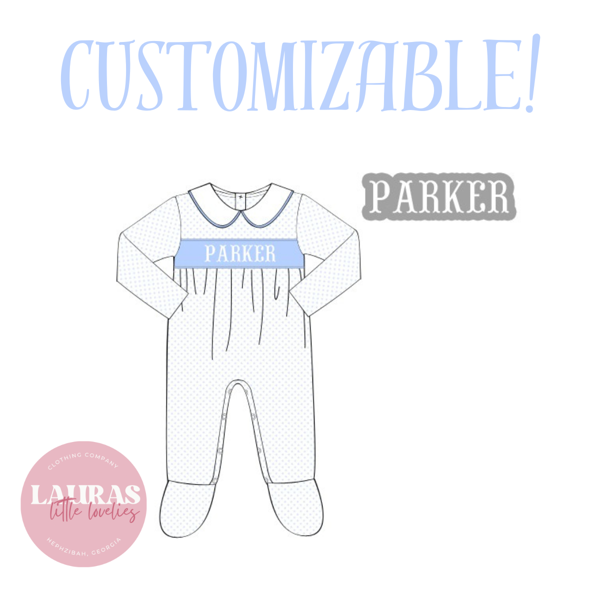 This is a PREORDER item with an ETA of 10-12 weeks. If you need this sooner, please send us a message. Please take this into consideration when selecting your size. The ETA is NOT a guaranteed delivery date, but an estimate time of arrival. Please be cautious if ordering for a specific event as we cannot guarantee delivery by any certain date. Name smocked item require personalization. Add your name/phrase in the personalization box on the product page. Ensure it appears with the product at checkout. Only items that say customizable have the option for personalization.