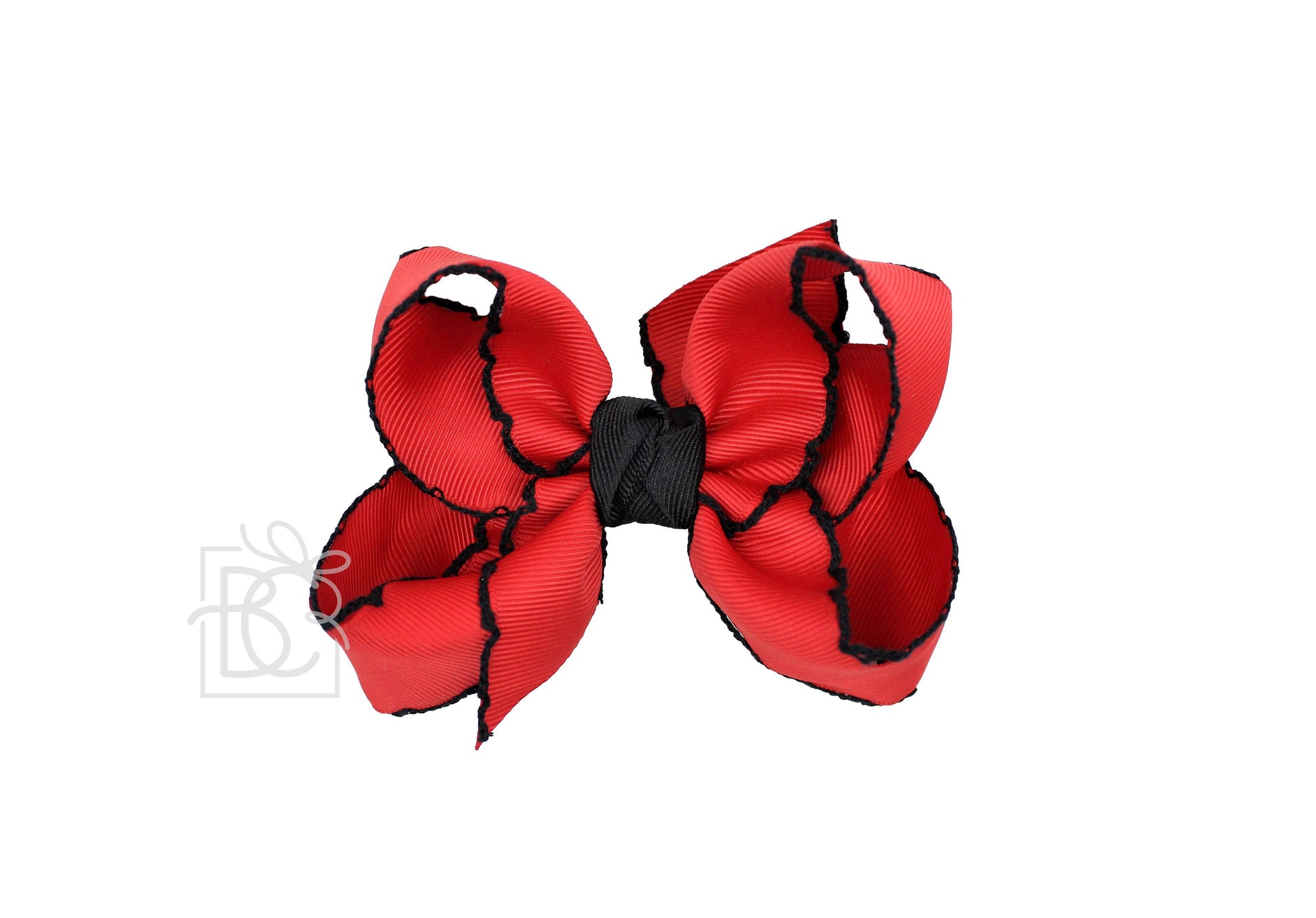 Crochet Edge Bows (Red & Black): 4.5" Large - 1.5" Ribbon on Alligator Clip
