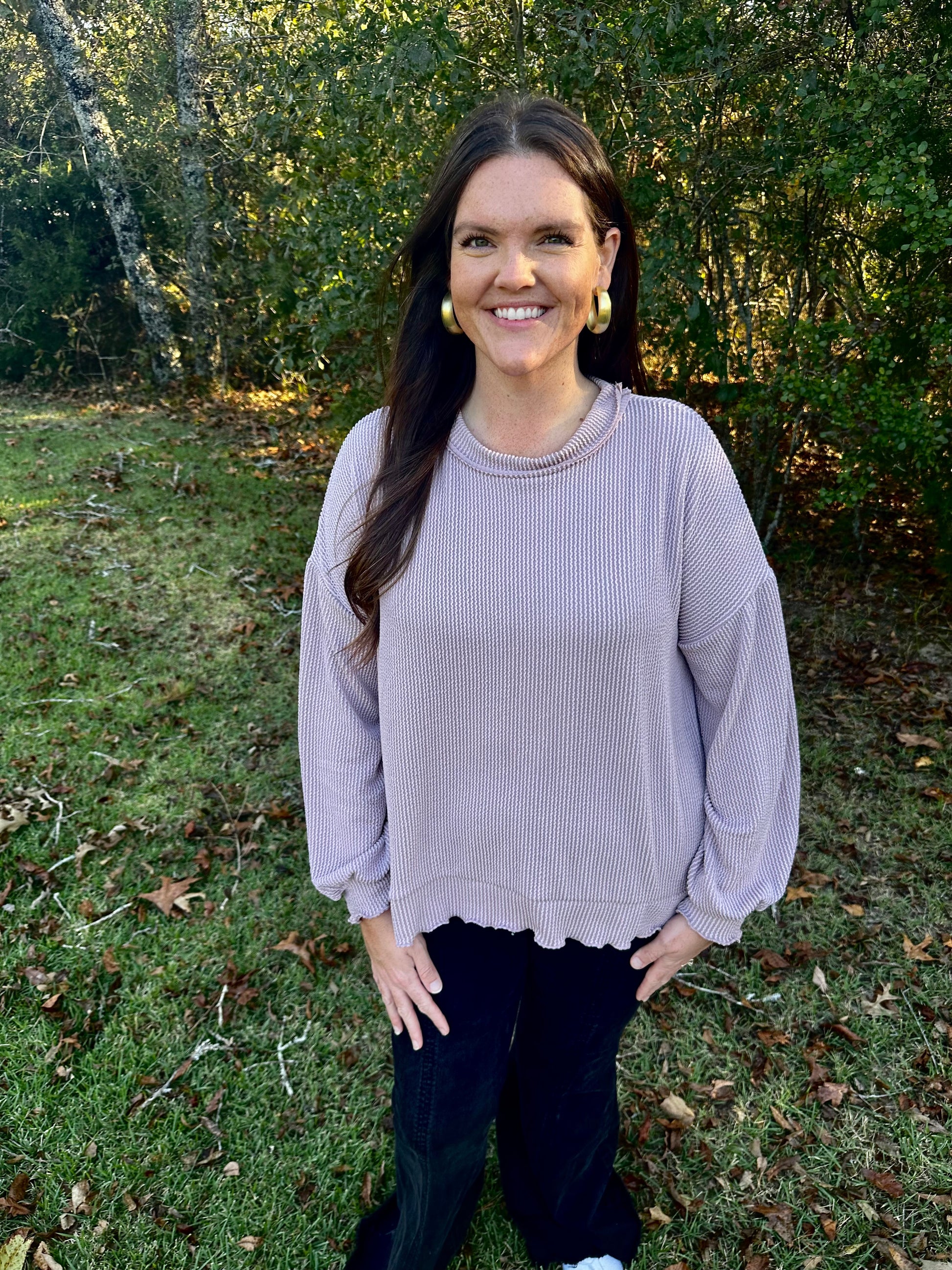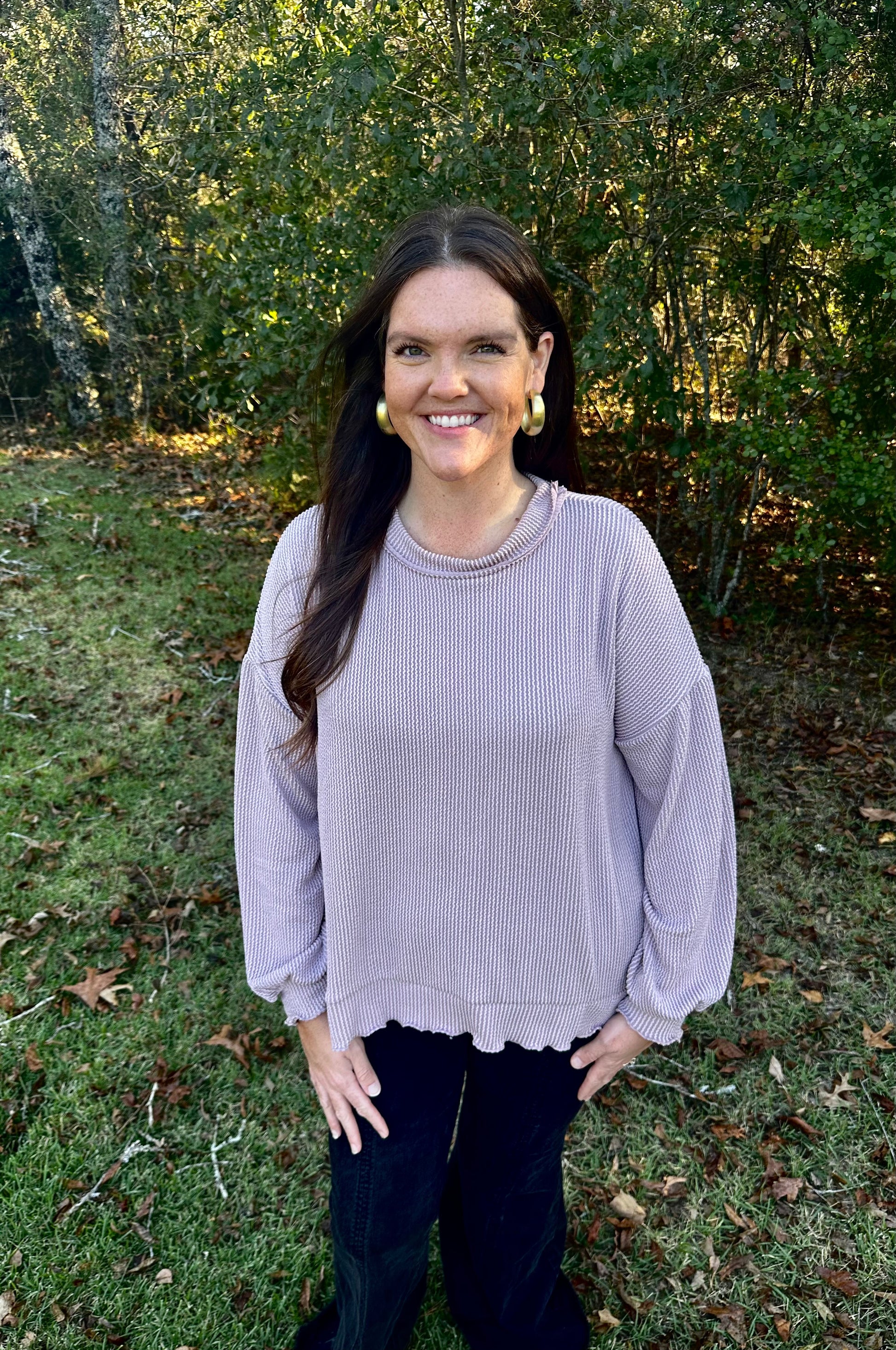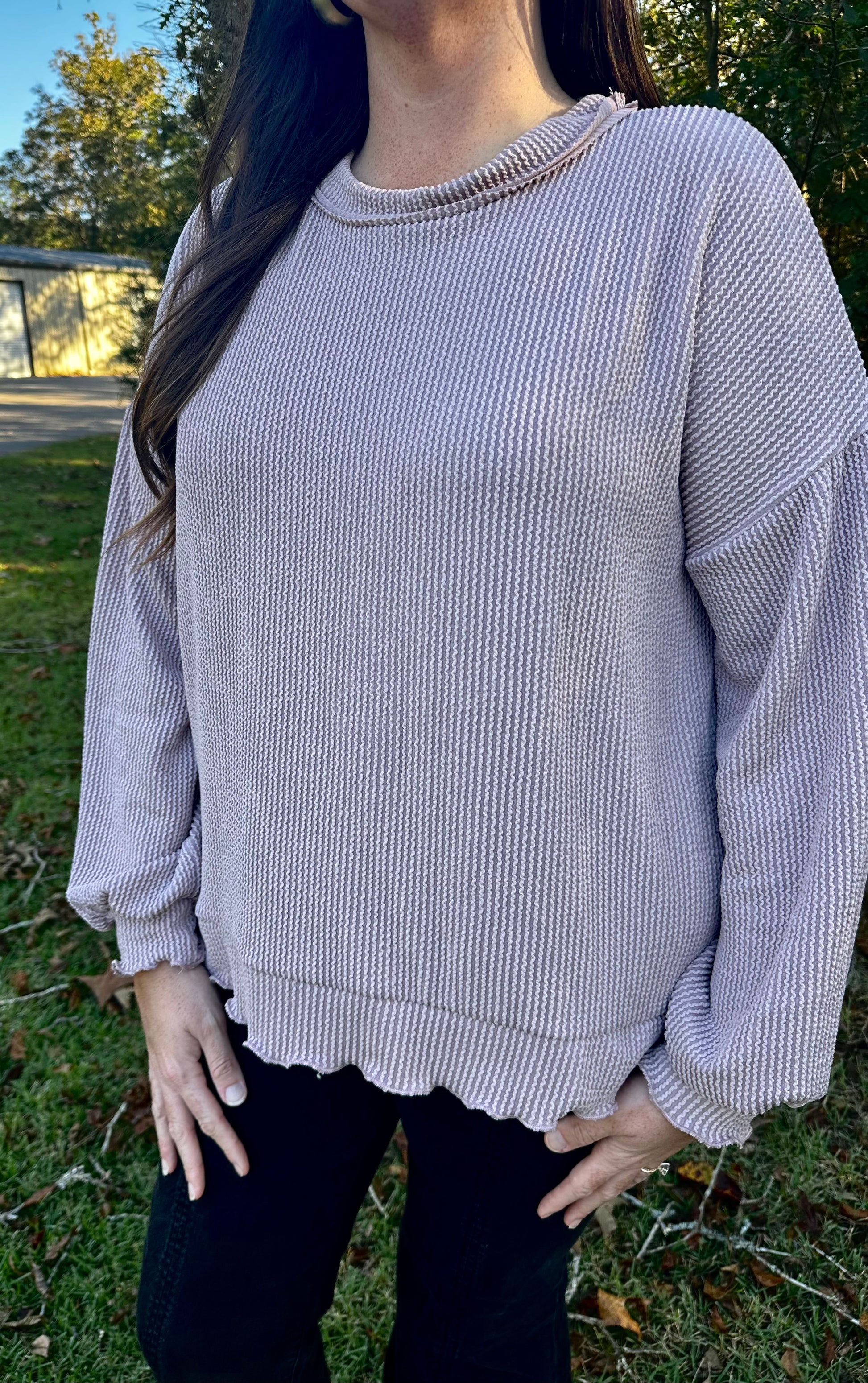 Wave Rib Basic Shirt. easy to dress up or down! Model is wearing a size large with room