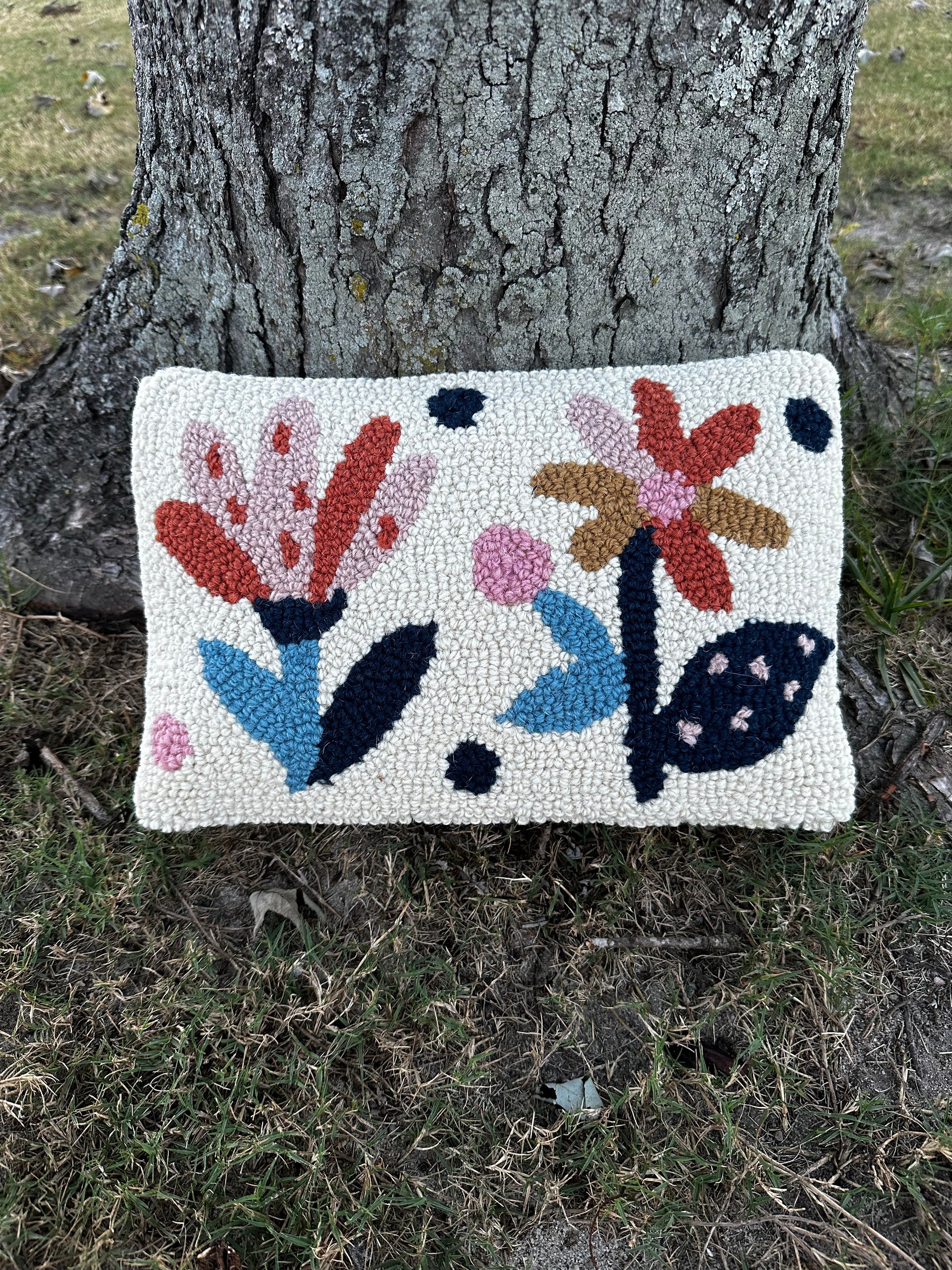 8 x 12in hand hooked throw pillow. Prefilled with zipper enclosed insert. Ready to ship