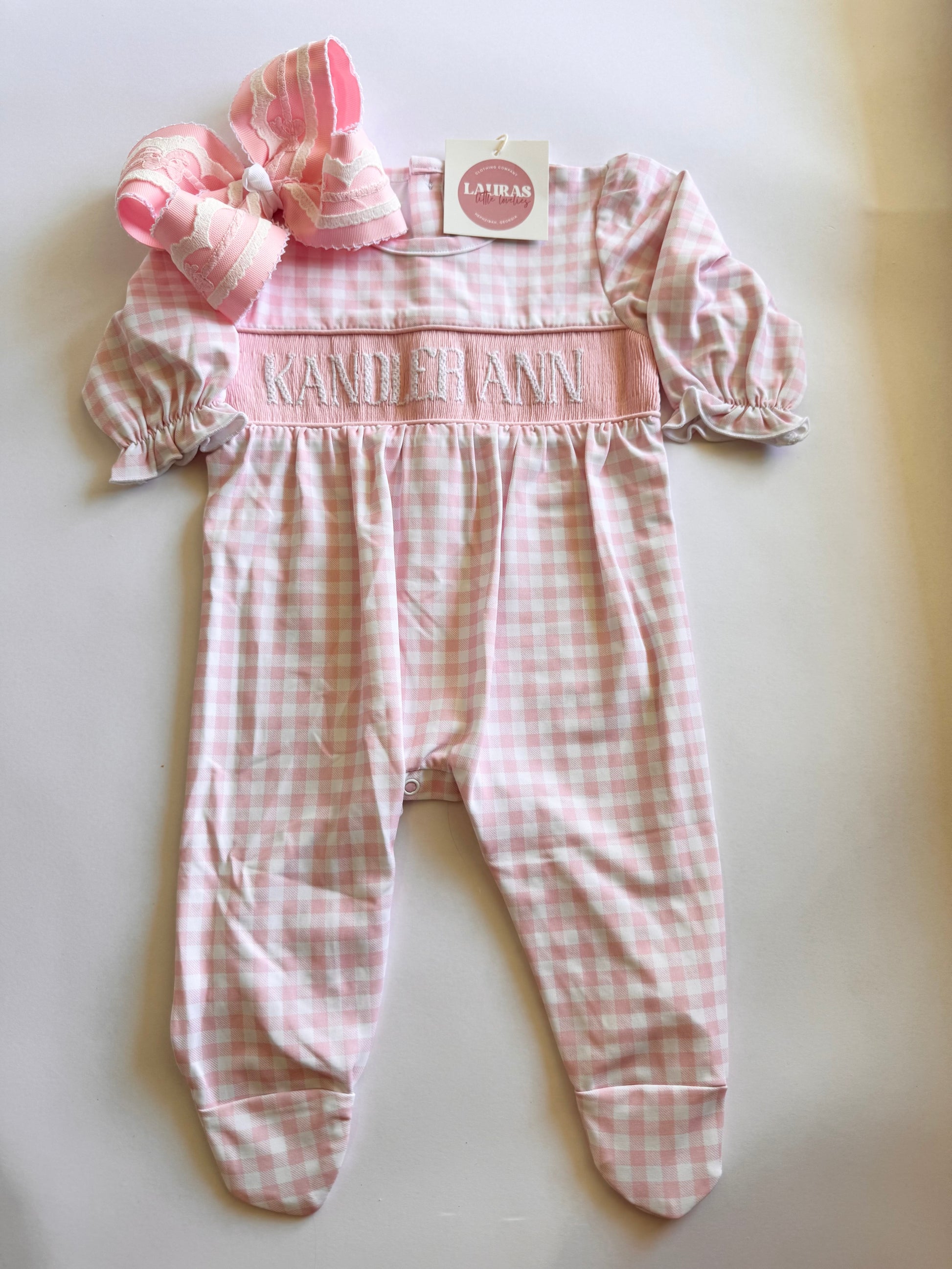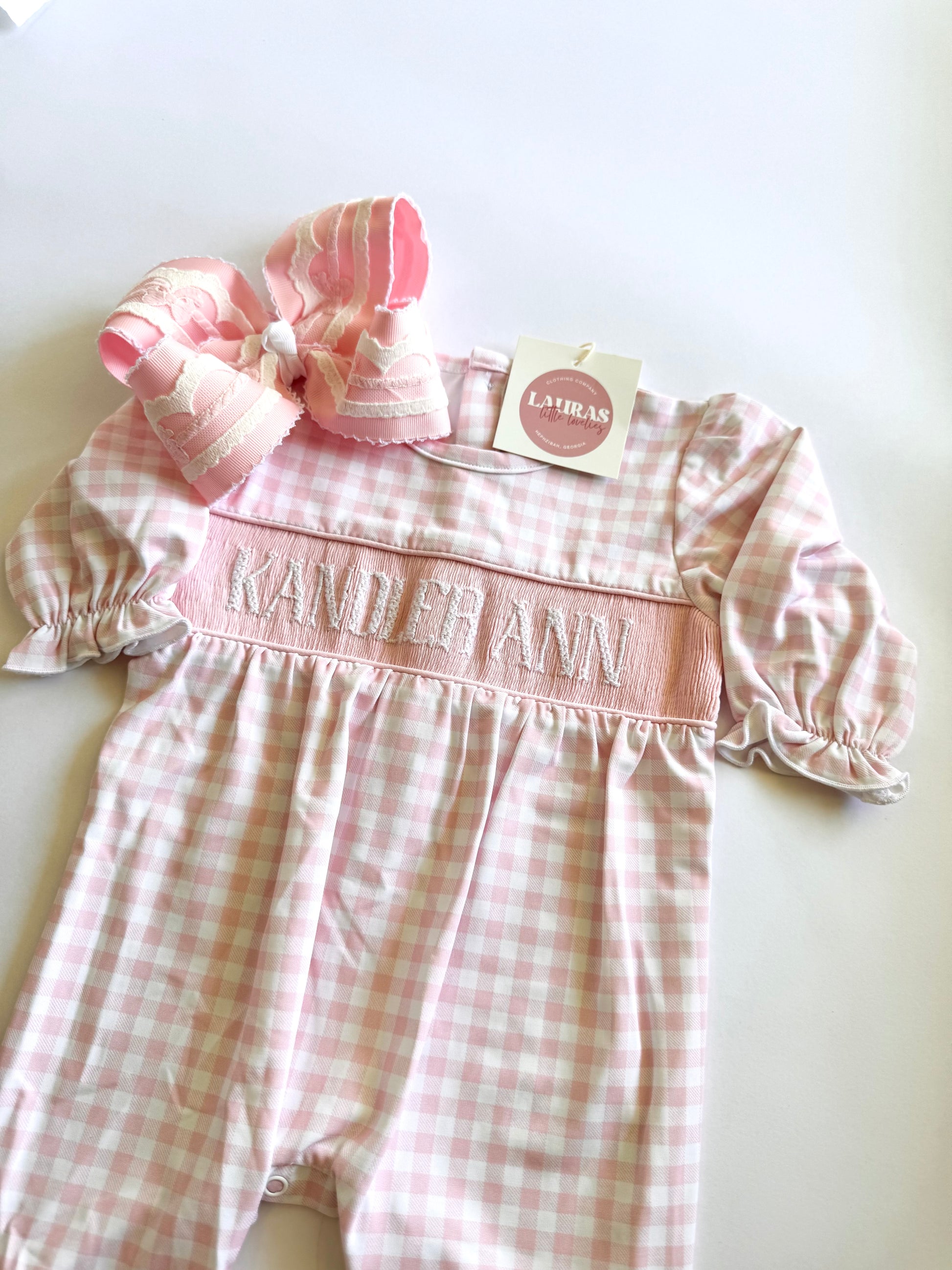 PLEASE NOTE: Name Smocked items are handmade and the lettering will not be perfectly uniform. Please pass on name smocks if this will bother you.