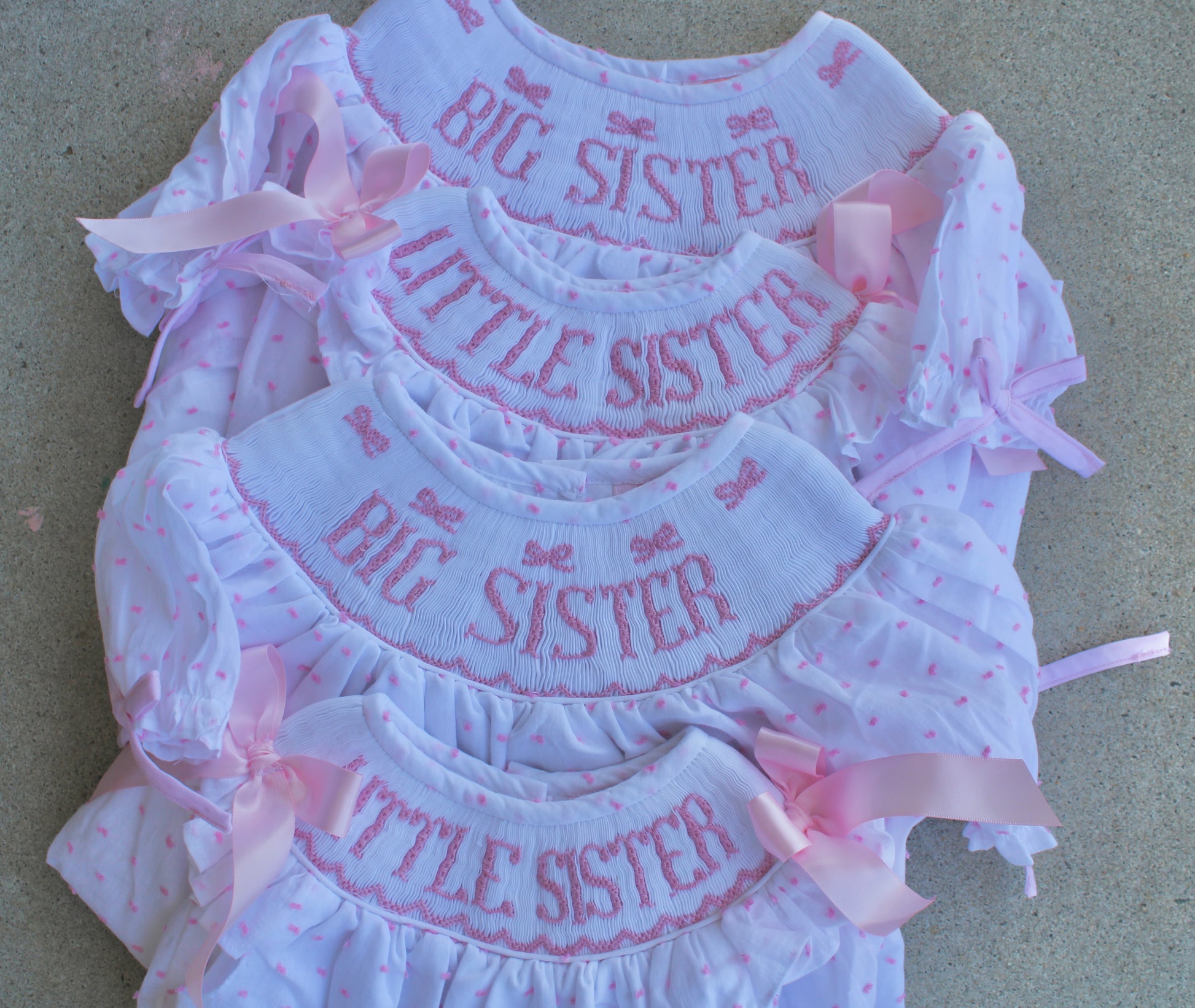 PLEASE NOTE: Name Smocked items are handmade and the lettering will not be perfectly uniform. Please pass on name smocks if this will bother you.