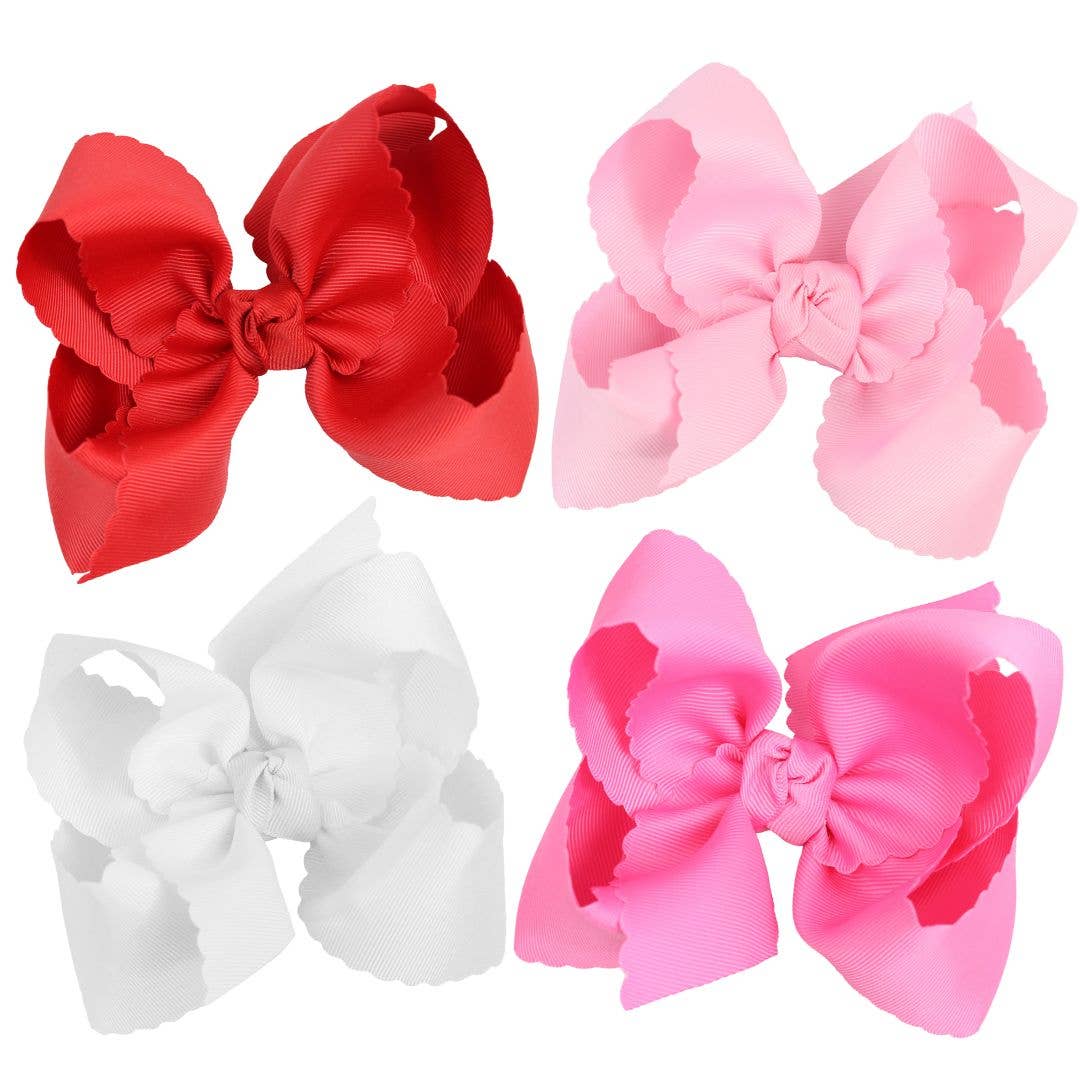 SCALLOPED EDGE BOW: Hot Pink / 5.5"