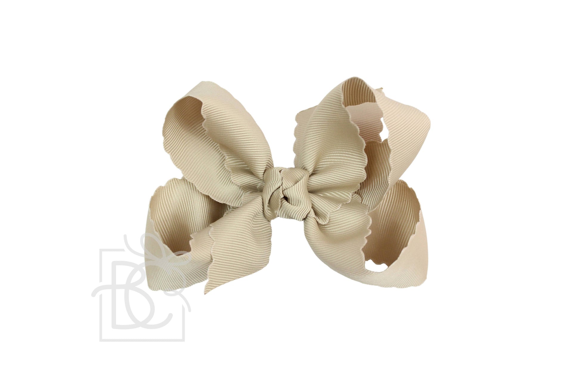 SCALLOPED EDGE BOW: Oatmeal / 4.5" Large - 1.5" Ribbon on Alligator Clip