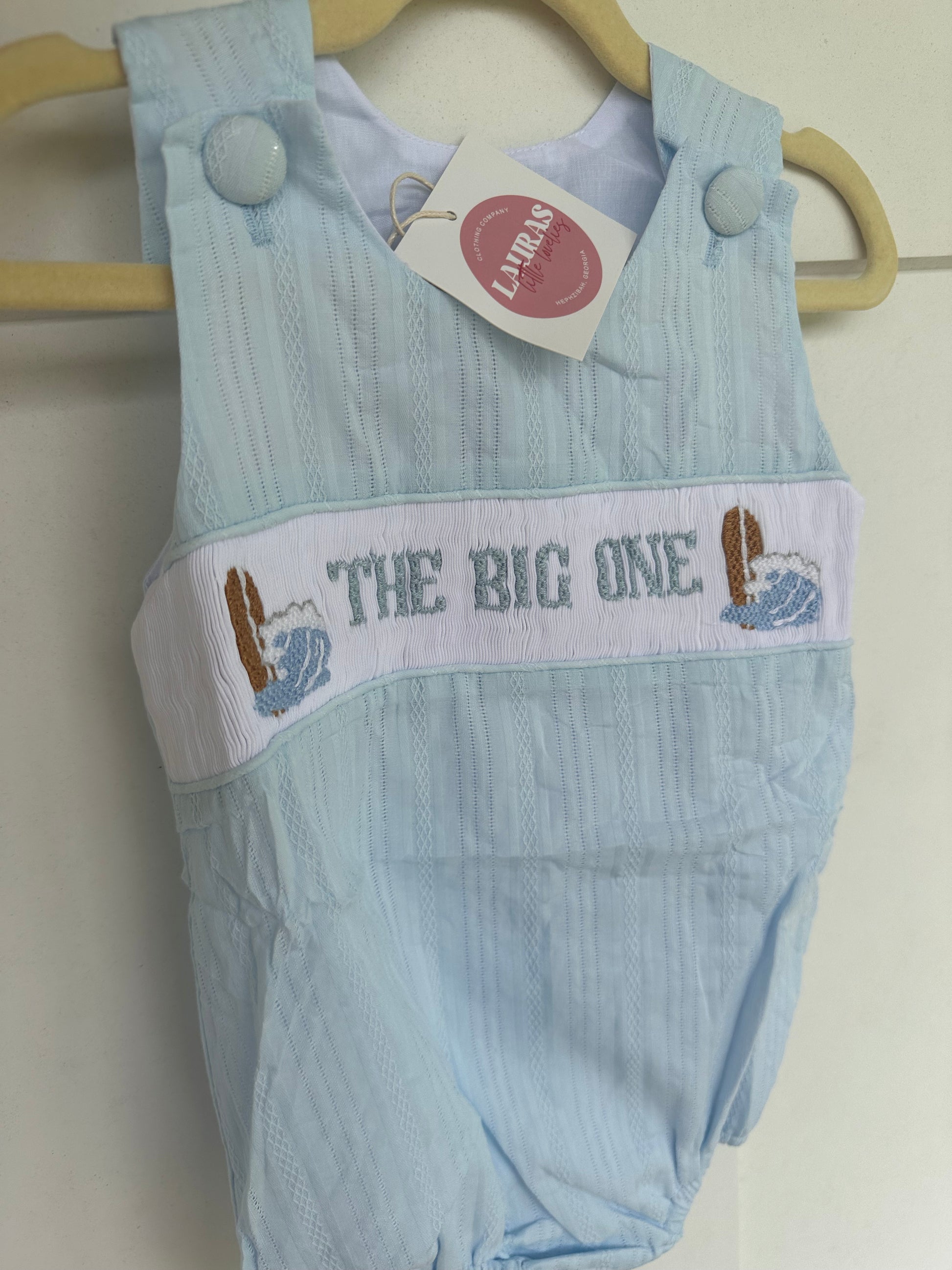 This is a custom listing for a first birthday bubble with a surfing theme. The text/wording can be customized.The fabric is a linen material with little to no stretch. We recommend that you size up in this style. Handmsocked and so sweet for your little ones first surf party! ETA is 10-13 weeks unless you choose our rush option of 5-7 weeks.
