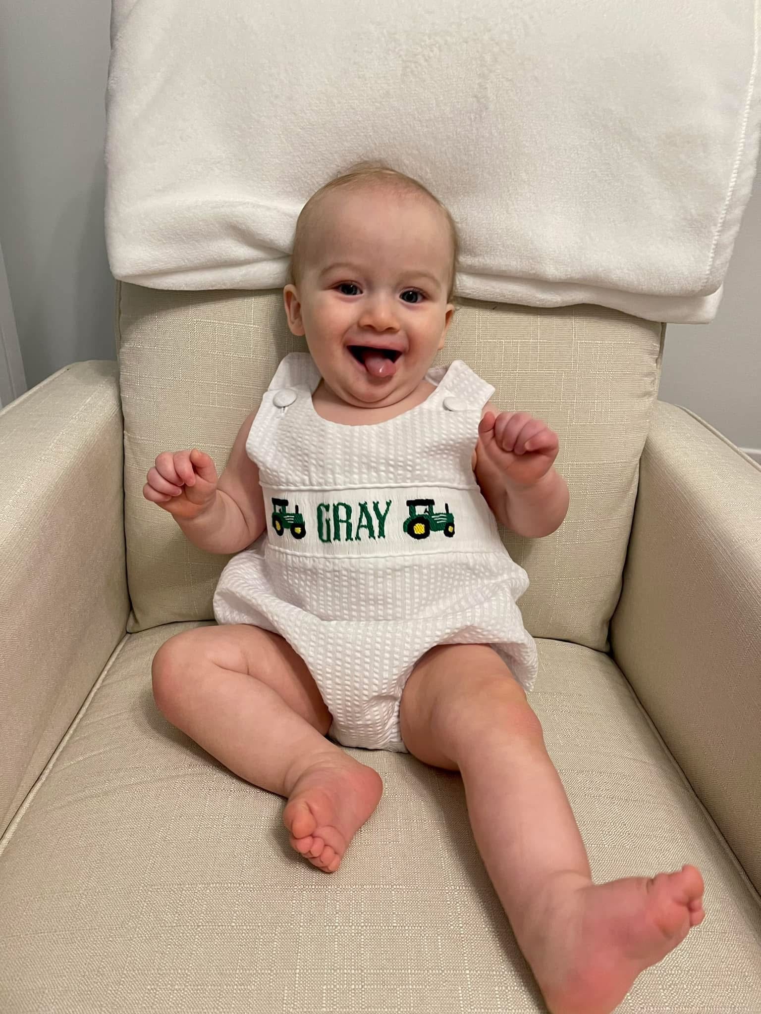 PLEASE NOTE: Name Smocked items are handmade and the lettering will not be perfectly uniform. Please pass on name smocks if this will bother you.