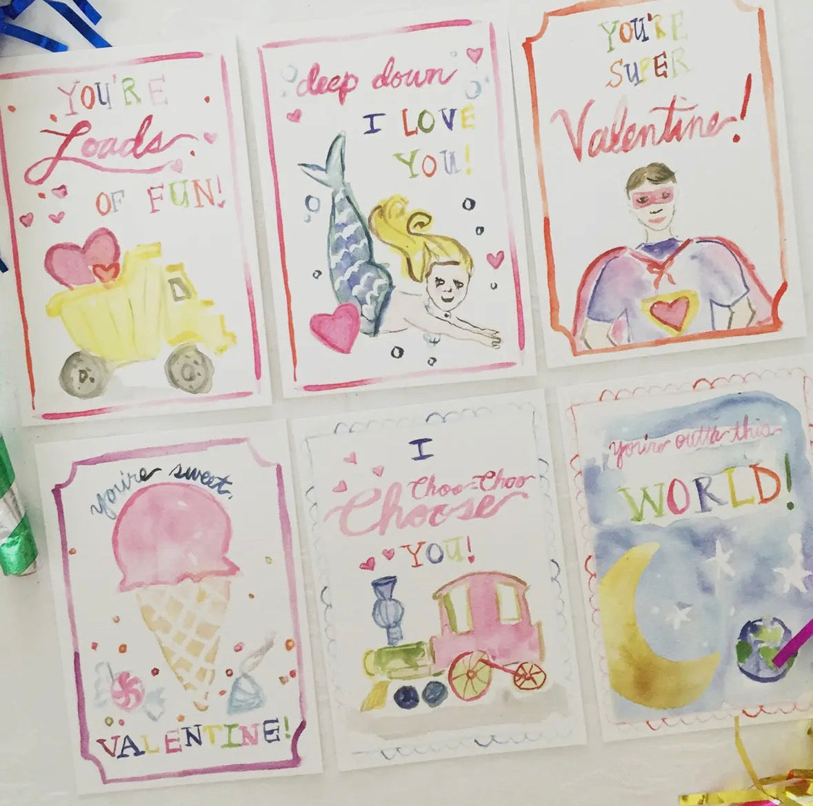 Watercolor Valentines Cards set of 12
